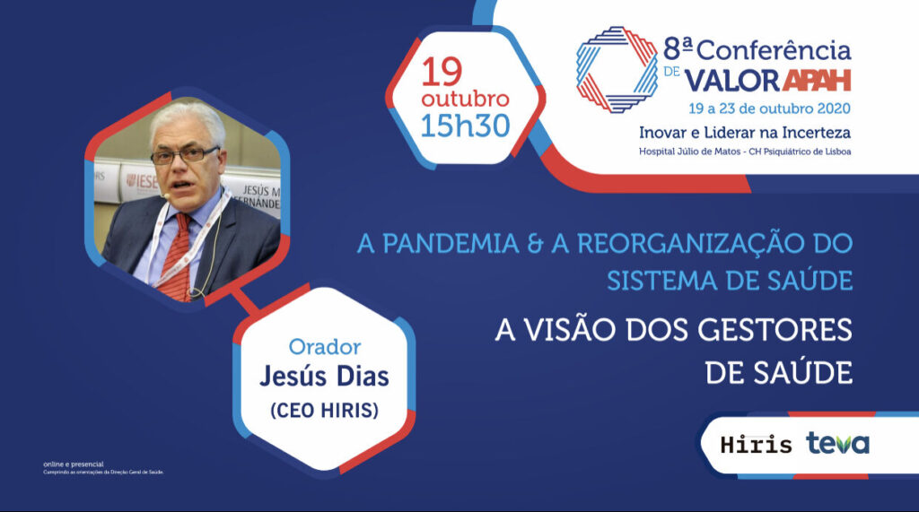 El próximo lunes 19 de octubre Jesús María Fernández, Fundador y CEO de HIRIS Care, presentará las conclusiones del informe «Aprendiendo de la Covid-19: La visión de los ejecutivos de salud en Portugal» en la 8.ª Conferência VALOR APAH – Inovar e Liderar na Incerteza.