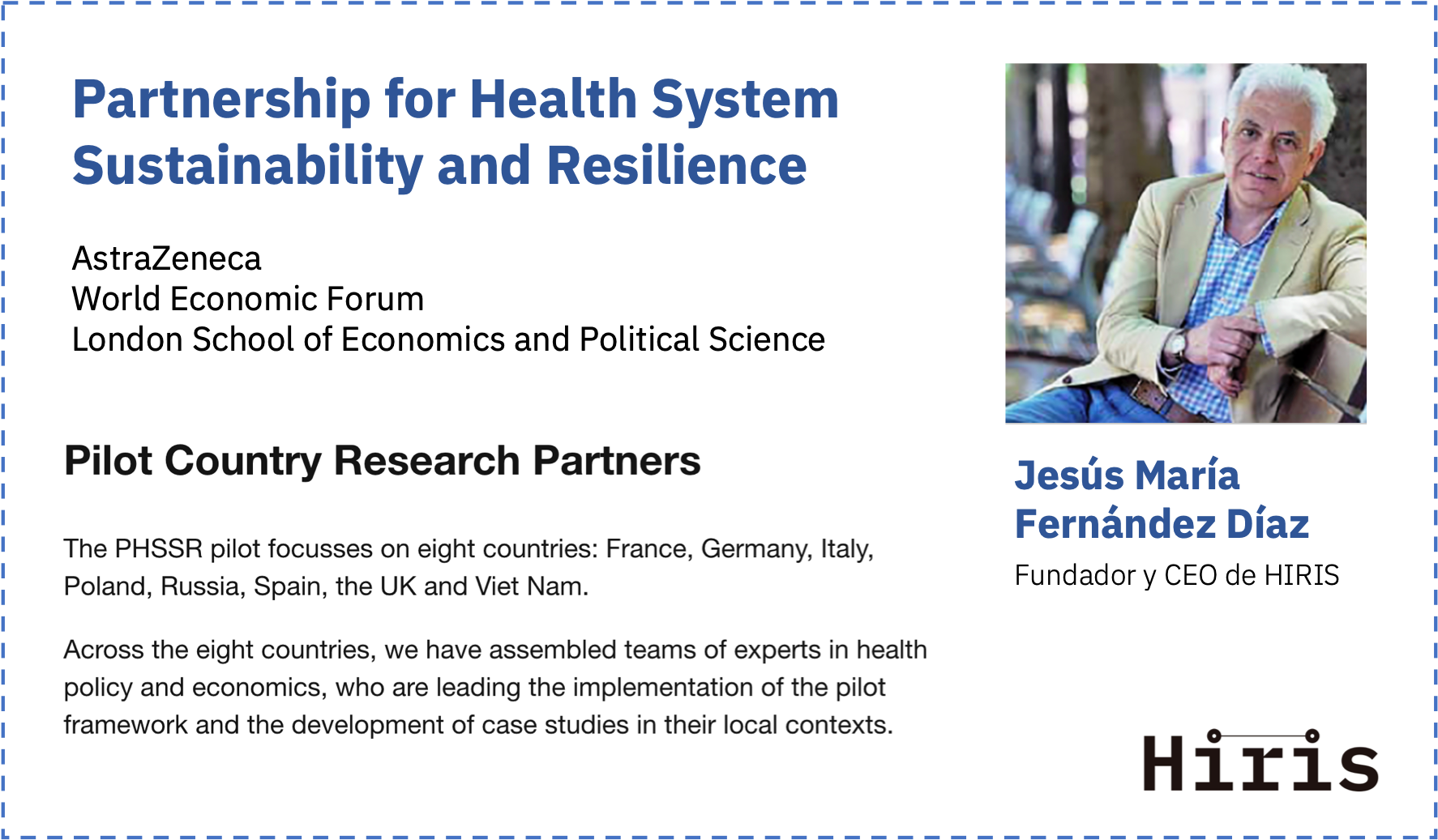 Jesús María Fernández, Fundador y CEO de Hiris Care, forma parte del Partnership for Health System Sustainability and Resilience como